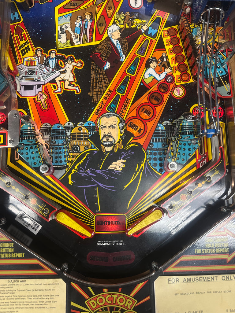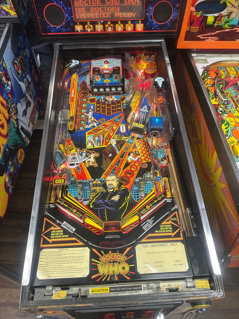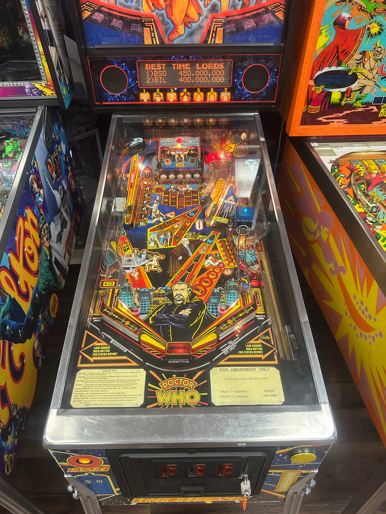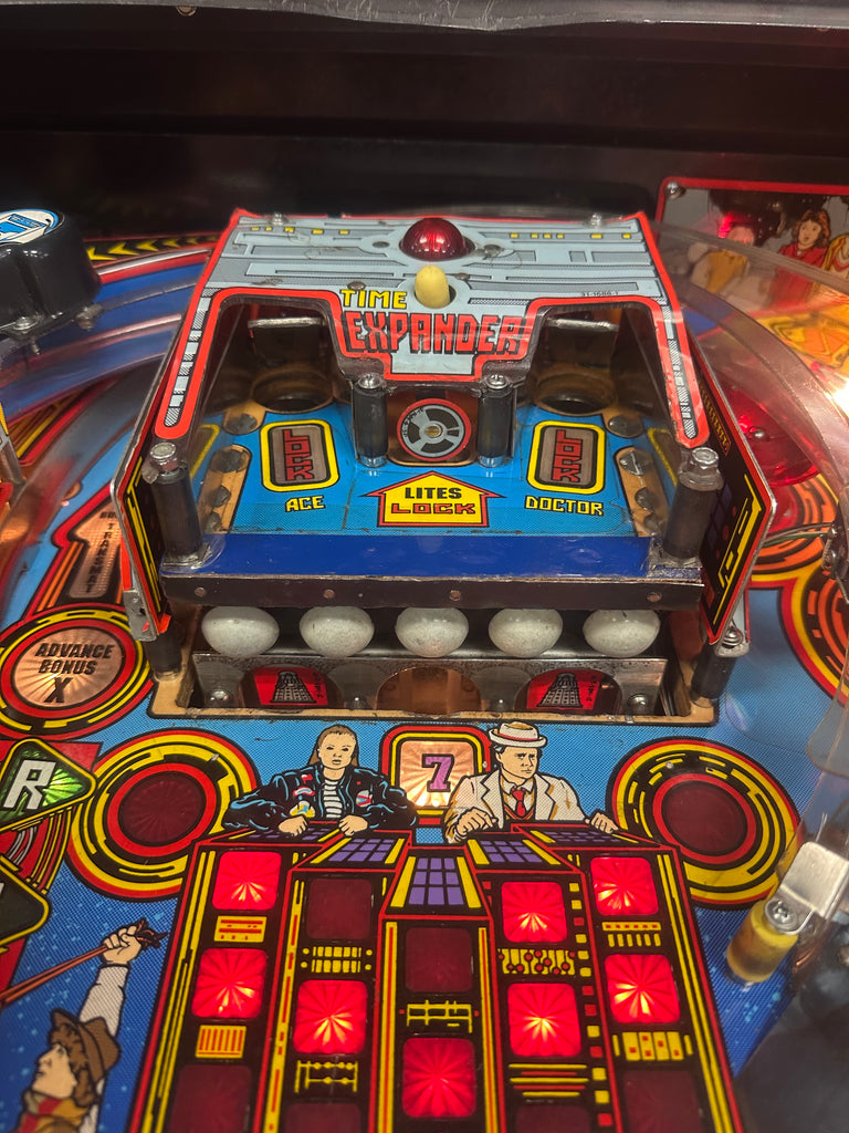 Doctor Who is a pinball machine released by Bally in 1992. It is based on the British sci-fi television series which has been in production since 1963. This game has a ton of cool features especially the moving 3-level mini playfield that has different toys on each playfield.