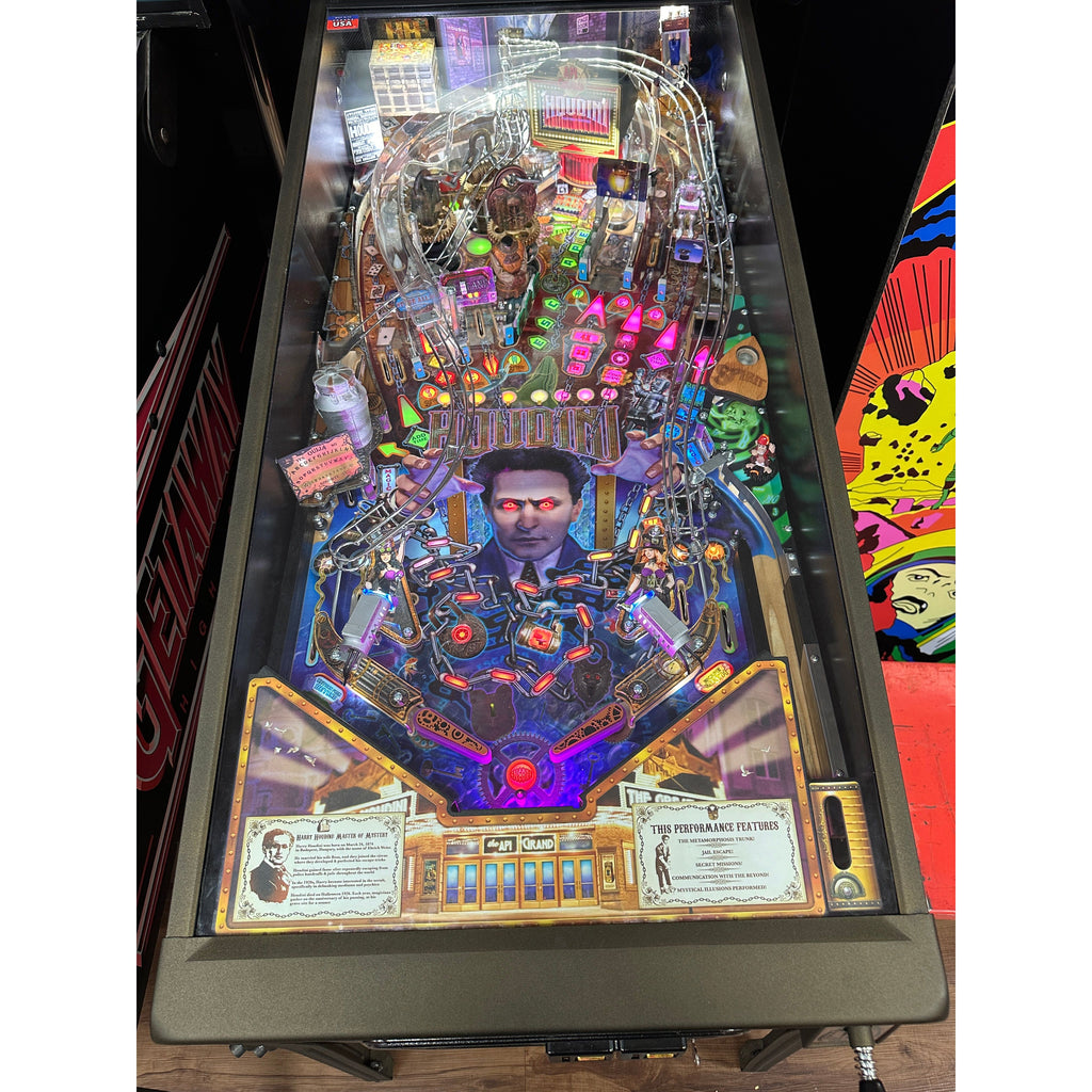 Explore the latest marvel of modern pinball with American Pinball's Houdini "Master of Mystery" - a game that's taking the pinball industry by storm—and for good reason: it embodies all of the escapes, illusions, and magic that made Houdini famous alongside the thrilling and timeless design by American Pinball. A celebration of the life and legend of Harry Houdini.