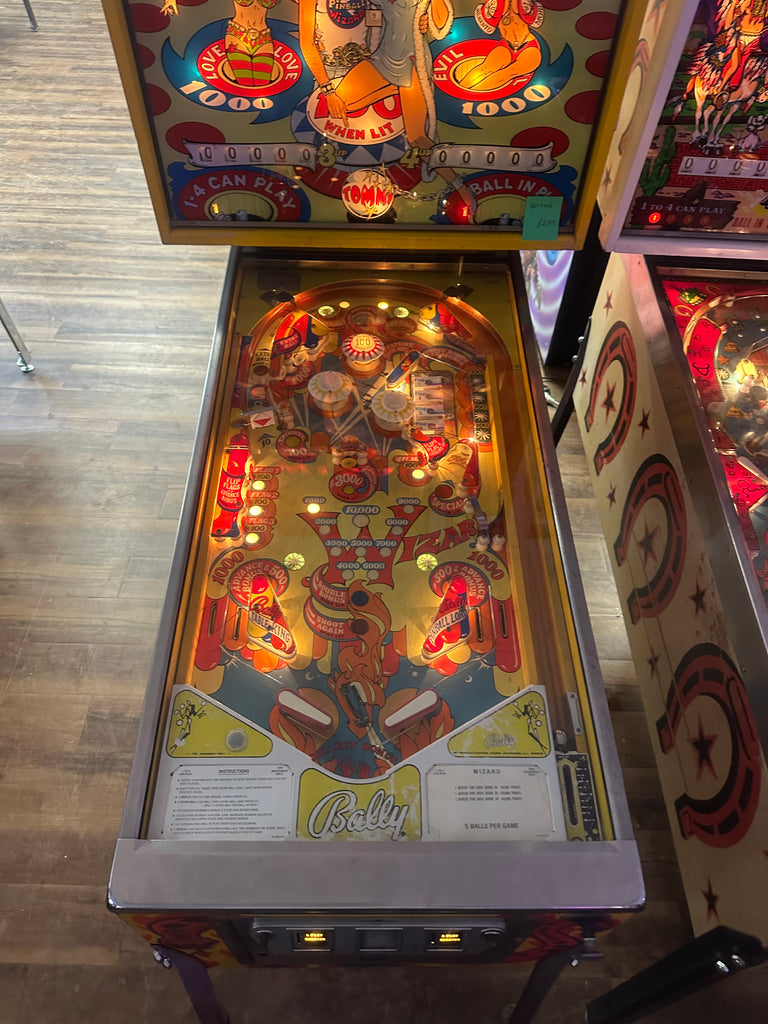 Wizard!, released in May 1975, was Bally's highest production flipper game to that date with over 10,000 units produced. Other than its classic theme, Wizard! is notable as being the first game to showcase playfield “flip flags”, a feature used on only a handful of other Bally games.