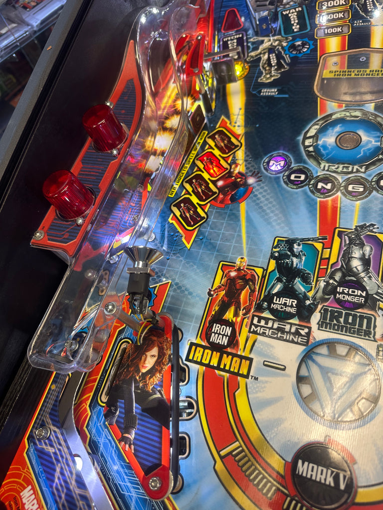 Iron Man Pro Vault Edition features technological and manufacturing upgrades utilized by Stern in its current Pro models. Among the improvements is all LED playfield lighting. Iron Man is manufactured with Stern’s updated modern metal and wood back box with red t-molding and with a decaled cabinet and speaker housing. The Iron Monger, War Machine and Whiplash figures have been molded in one piece construction for improved strength.
