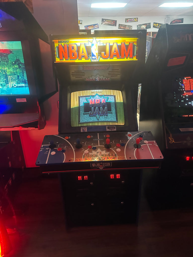 This is an all-original NBA Jam arcade game in excellent condition. This game has the original CRT monitor installed with original NBA jam board. This game can be set to coin op or free play which makes for a perfect addition to any business or home!