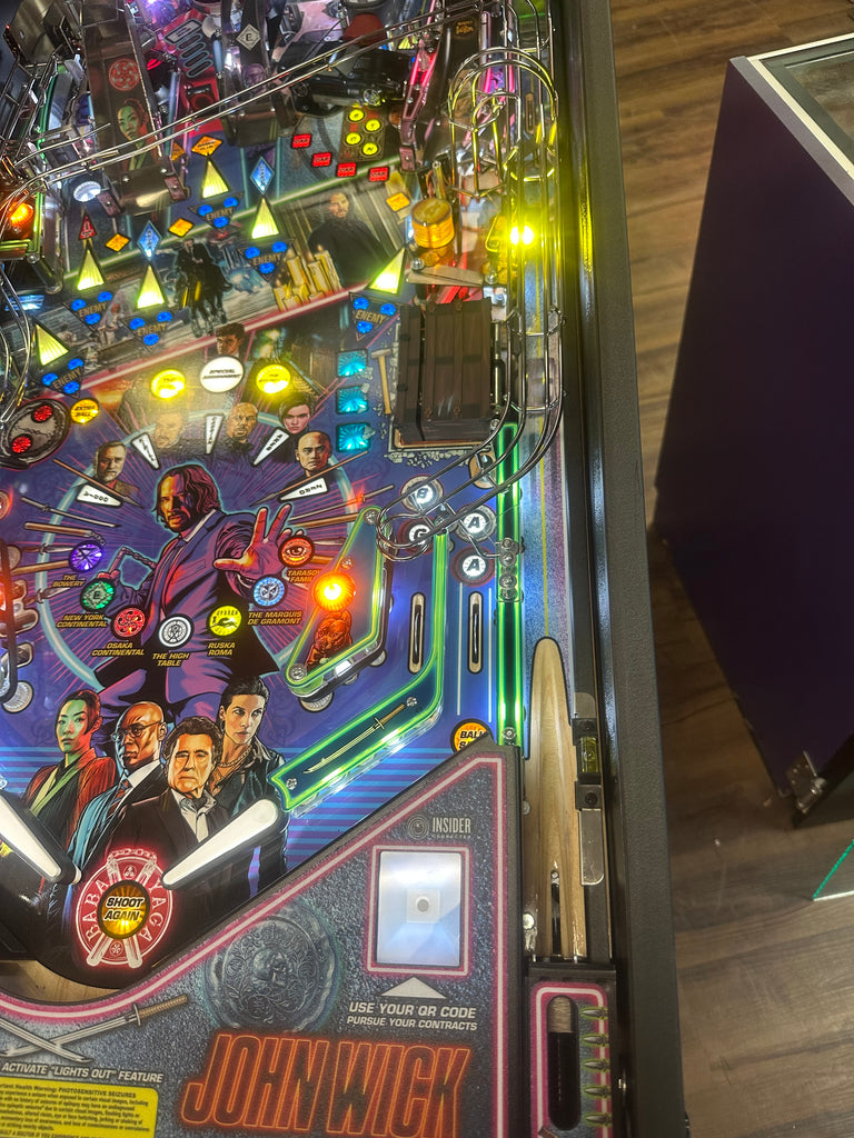 John Wick pinball games include Stern’s award-winning Insider Connected™ system, which enables players to interact with the game and a global network of players in multiple ways.  Through Insider Connected, players can track progress, earn new game-specific Achievements, take on special John Wick Quests and complete Faction Contracts to increase their Assassin ranking.