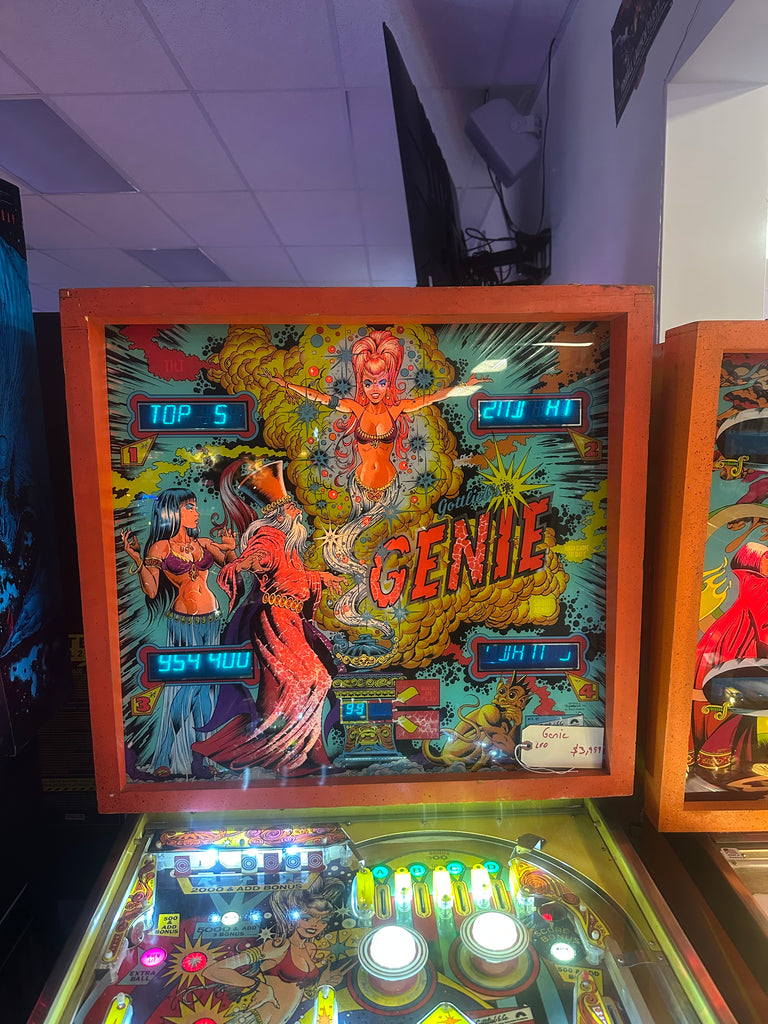 Genie is a pinball machine from October 1979, manufactured by D. Gottlieb & Co. Genie has a ton of unique features including 5 flippers, upper left mini playfield, and wide body build. This game will be completely upgraded with premium LED's and rubber parts.