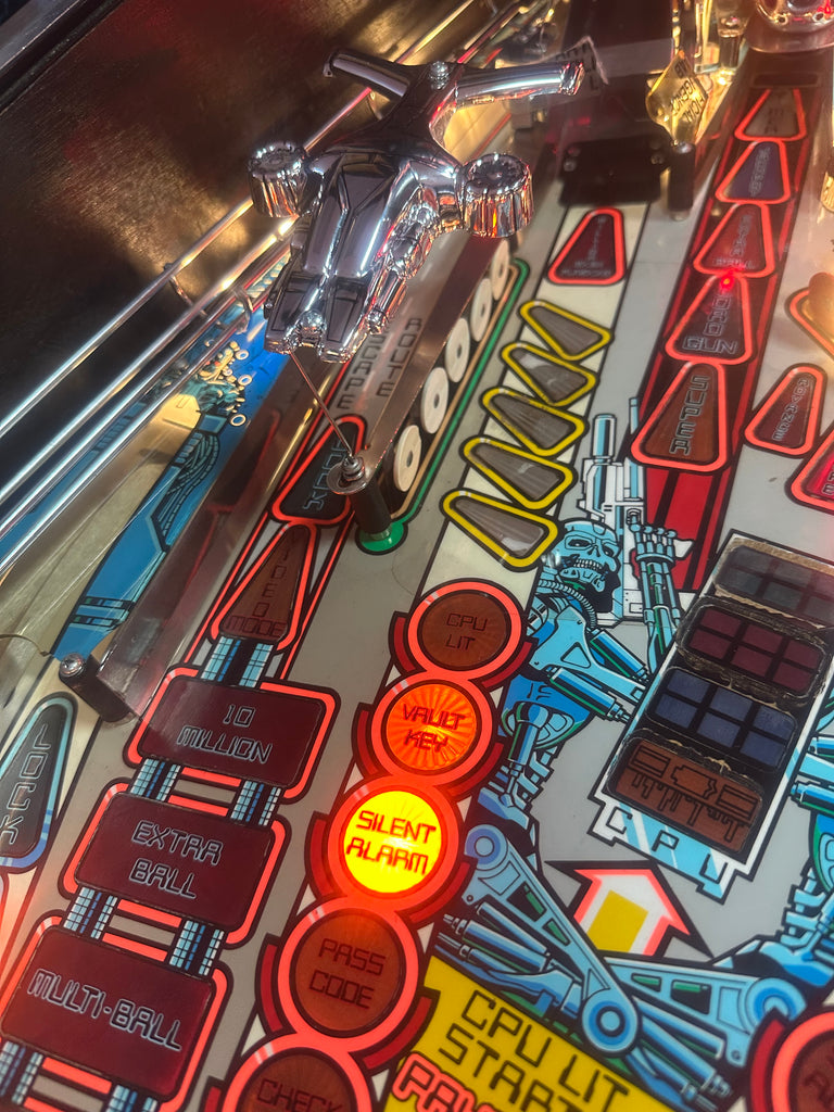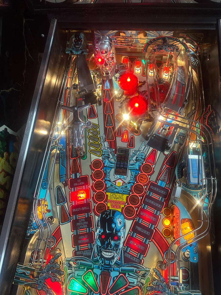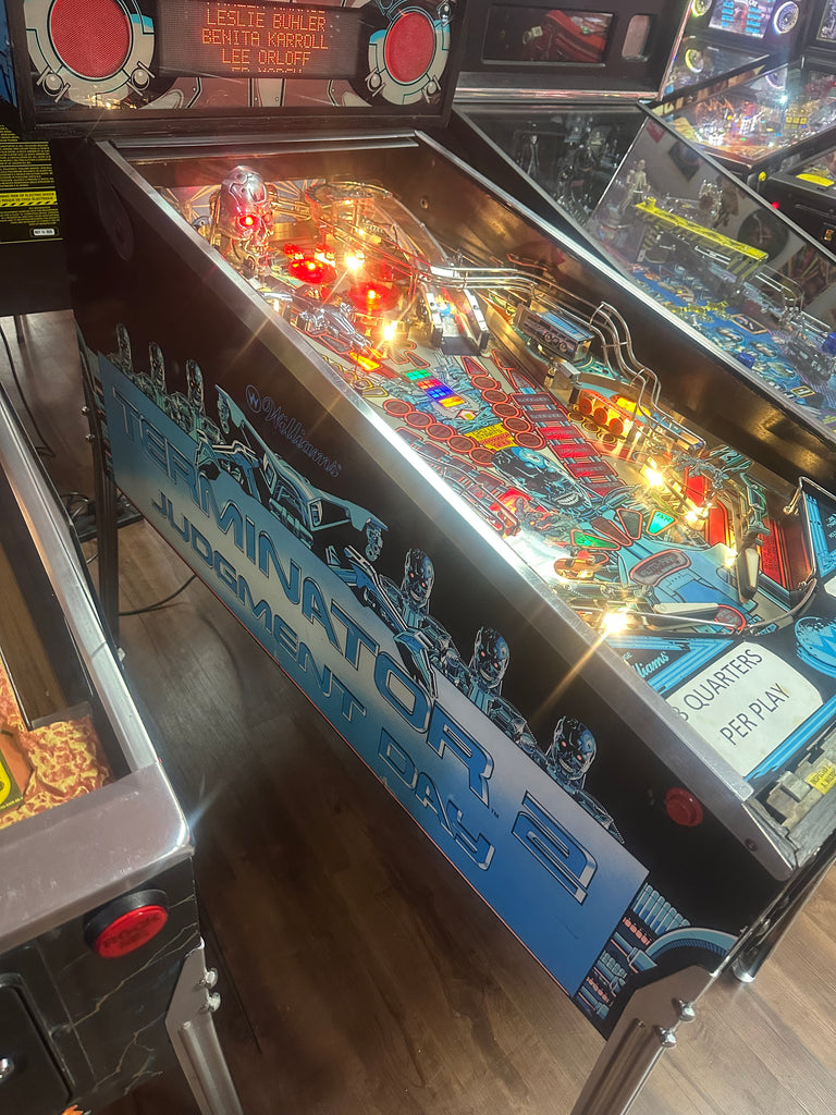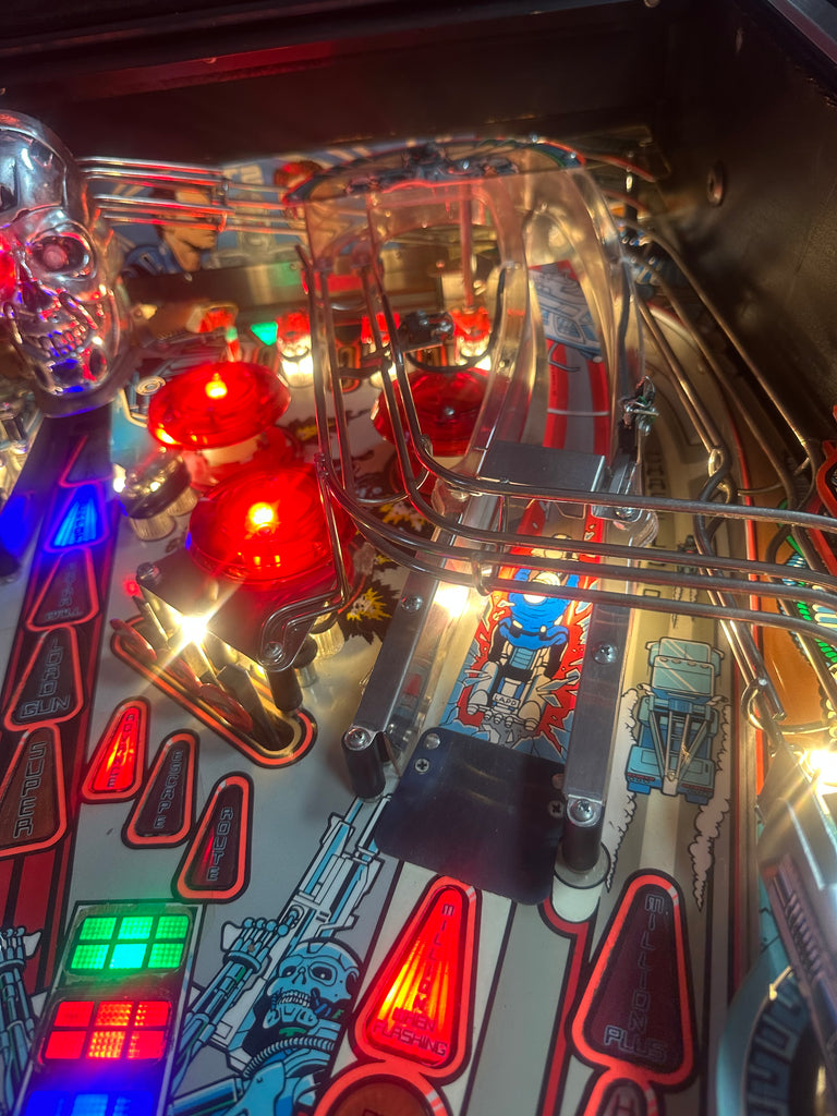 This is the first Williams designed pinball to make use of a DMD and the first to feature a video mode. Terminator 2: Judgement Day by Williams was developed from the famous sci-fi Terminator movie starring Arnold Schwarzenegger This is a beautiful example of the game. The playfield and cabinet are in excellent condition. This machine was upgraded with brand new LED's and rubber parts.